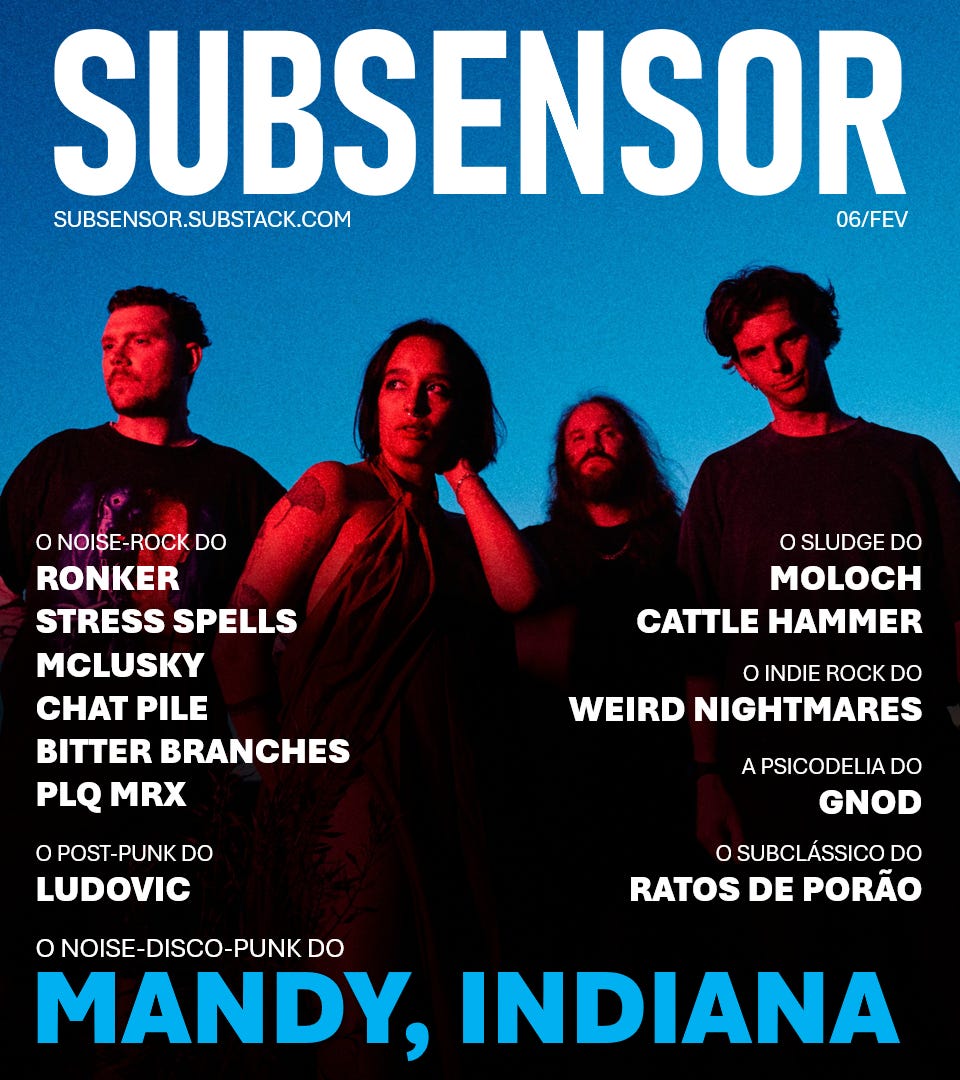 Nessa edição destaco o noise-disco-punk do MANDY, INDIANA, o noise-rock do RONKER, STRESS SPELLS, MCLUSKY, CHAT PILE, BITTER BRANCHES e PLQ MRX, o sludge do MOLOCH e CATTLE HAMMER, o post-punk do LUDOVIC, o indie-rock do WEIRD NIGHTMARES, e a psicodelia do GNOD.