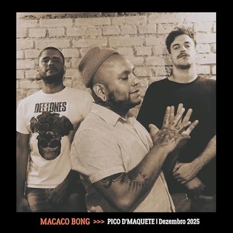 Uma das entidades máximas do rock instrumental nacional, o MACACO BONG lançou no final de 2025 o Pico D’Maquete, uma espécie de “centro de cyber cultura digital” que vai receber shows autorais e performances artísticas nos mesmos moldes do Pico do Macaco, espaço de shows que a banda manteve em São Paulo há alguns anos. E o primeiro projeto do Pico D’Maquete é do próprio Macaco Bong, com a banda gravando ao vivo um EP com três faixas inéditas. A banda promete sessões mensais desse projeto, a aguardar.