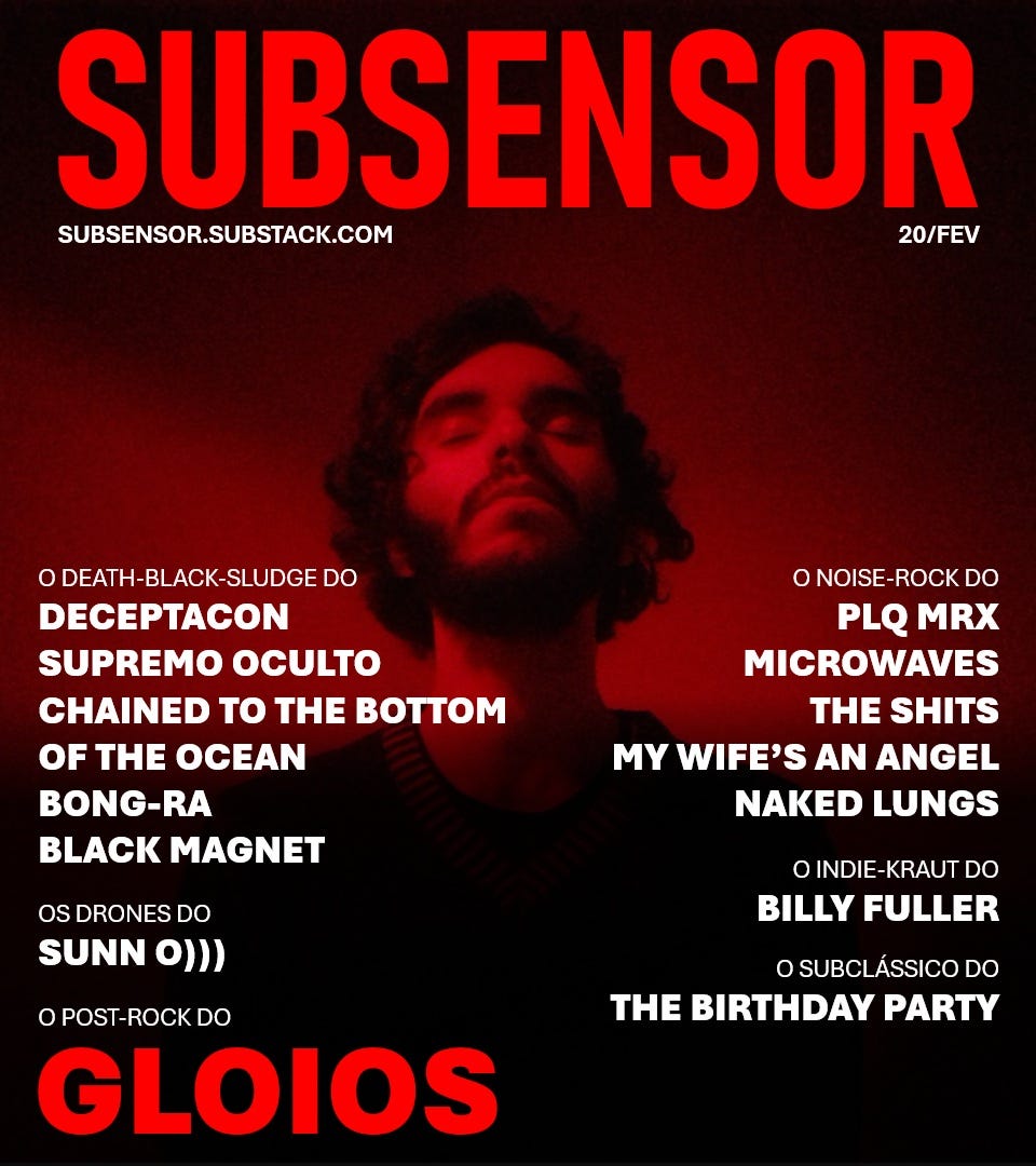 Nessa edição destaco o post-rock do GLOIOS, o noise-rock do PLQ MRX, MICROWAVES, THE SHITS, MY WIFE’S AN ANGEL e NAKED LUNGS, o death-black-sludge do DECEPTACON, SUPREMO OCULTO, CHAINED TO THE BOTTOM OF THE OCEAN, BONG-RA e BLACK MAGNET, os drones do SUNN O))), e o indie-kraut do BILLY FULLER.